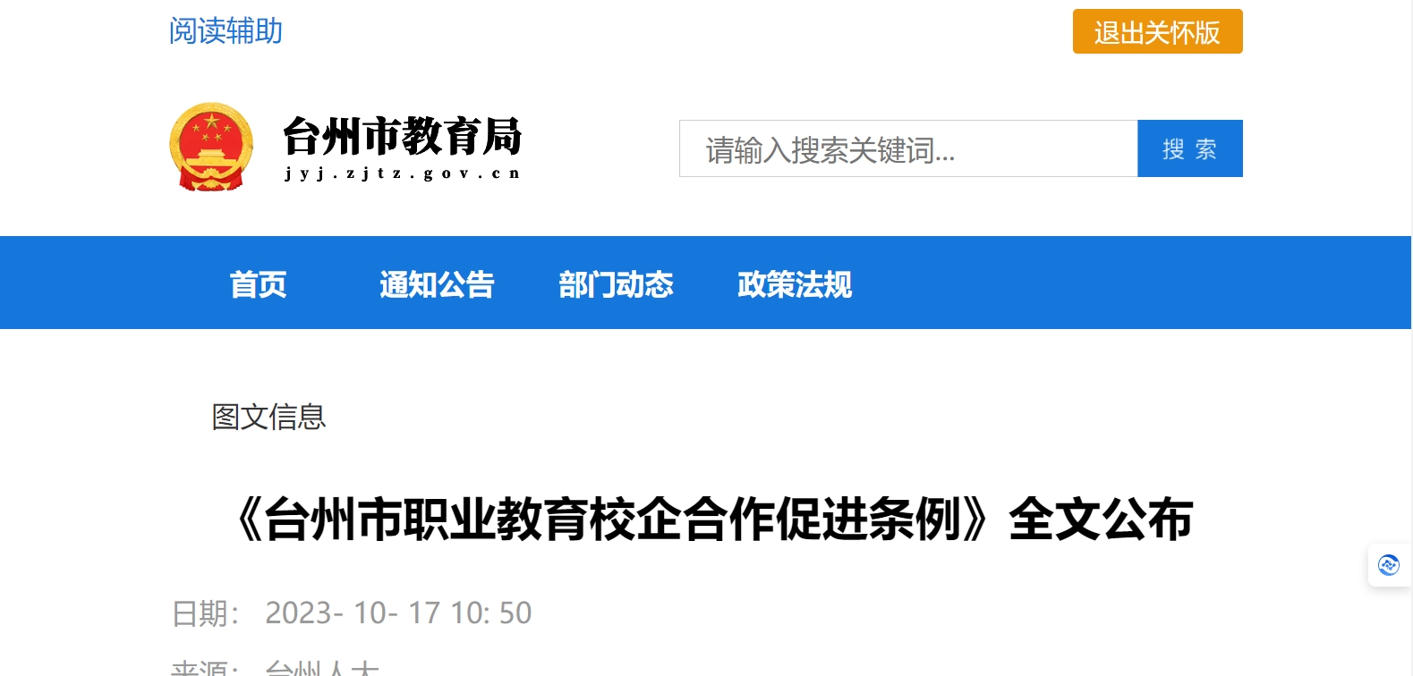 日前,經(jīng)浙江省第十四屆人民代表大會(huì)常務(wù)委員會(huì)第五次會(huì)議批準(zhǔn),浙江臺(tái)州正式發(fā)布職業(yè)教育校企合作促進(jìn)條例共25條,定于2024年1月1日起實(shí)施。