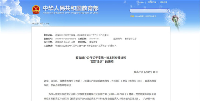 教育部:?jiǎn)?dòng)一流本科專業(yè)建設(shè)“雙萬(wàn)計(jì)劃”