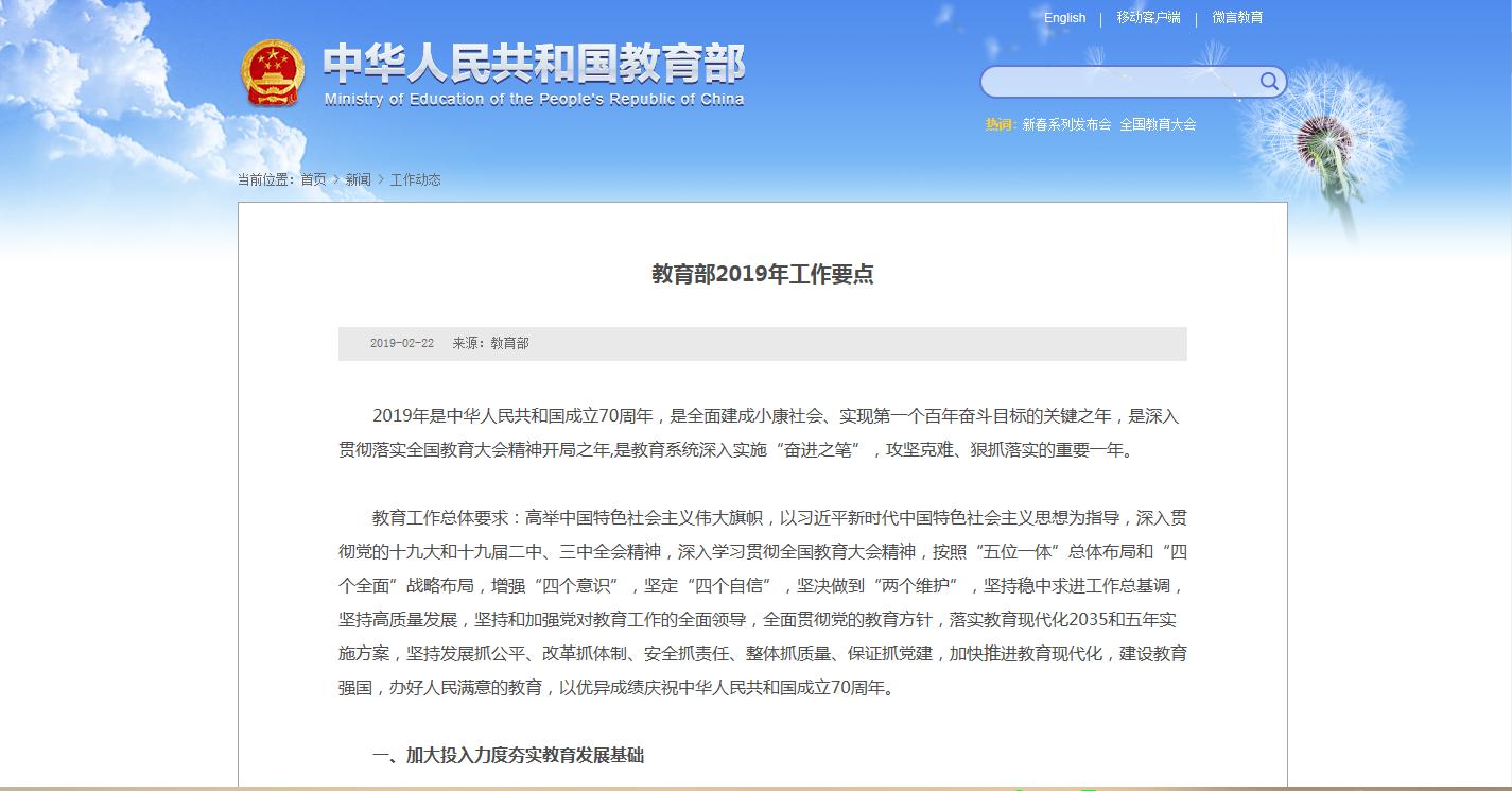 教育部2019年工作要點(diǎn)發(fā)布 職業(yè)教育占4條