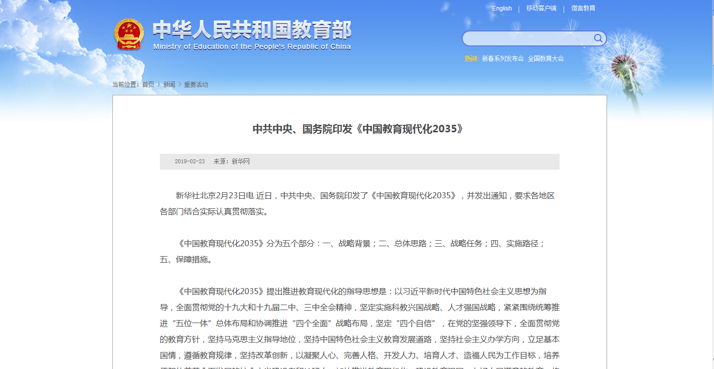 近日,中共中央、國務(wù)院印發(fā)了《中國教育現(xiàn)代化2035》,其中提到2035年主要發(fā)展目標(biāo)是:建成服務(wù)全民終身學(xué)習(xí)的現(xiàn)代教育體系、普及有質(zhì)量的學(xué)前教育、實(shí)現(xiàn)優(yōu)質(zhì)均衡的義務(wù)教育、全面普及高中階段教育、職業(yè)教......