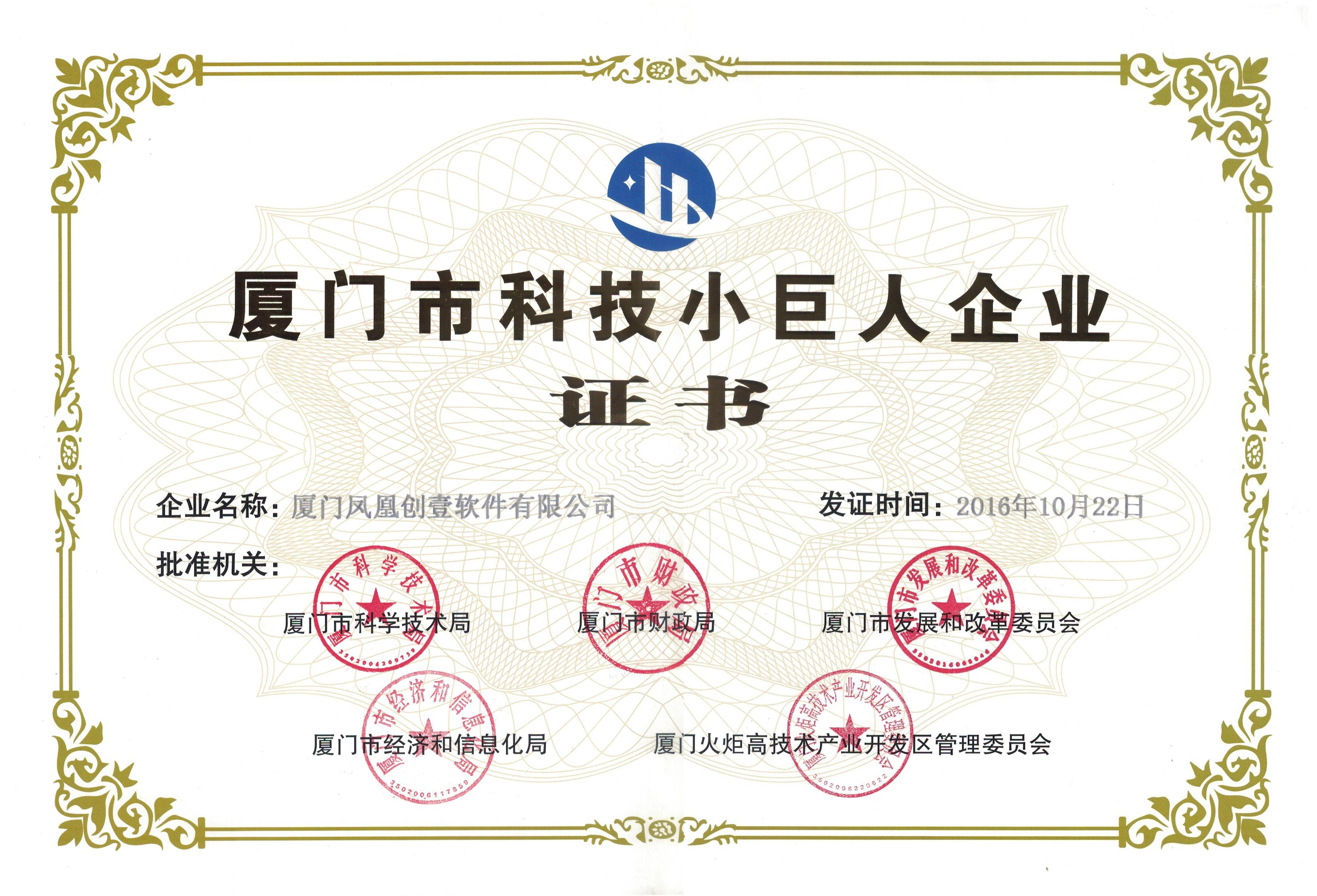 近日,市科技局、財(cái)政局、發(fā)改委、經(jīng)信局和火炬管委會(huì)五部門聯(lián)合公布了2016年廈門市科技小巨人企業(yè)和領(lǐng)軍企業(yè)名單。今年共有346家企業(yè)入選“廈門市科技小巨人企業(yè)庫”,本公司(廈門鳳凰創(chuàng)壹軟件有限公司......
