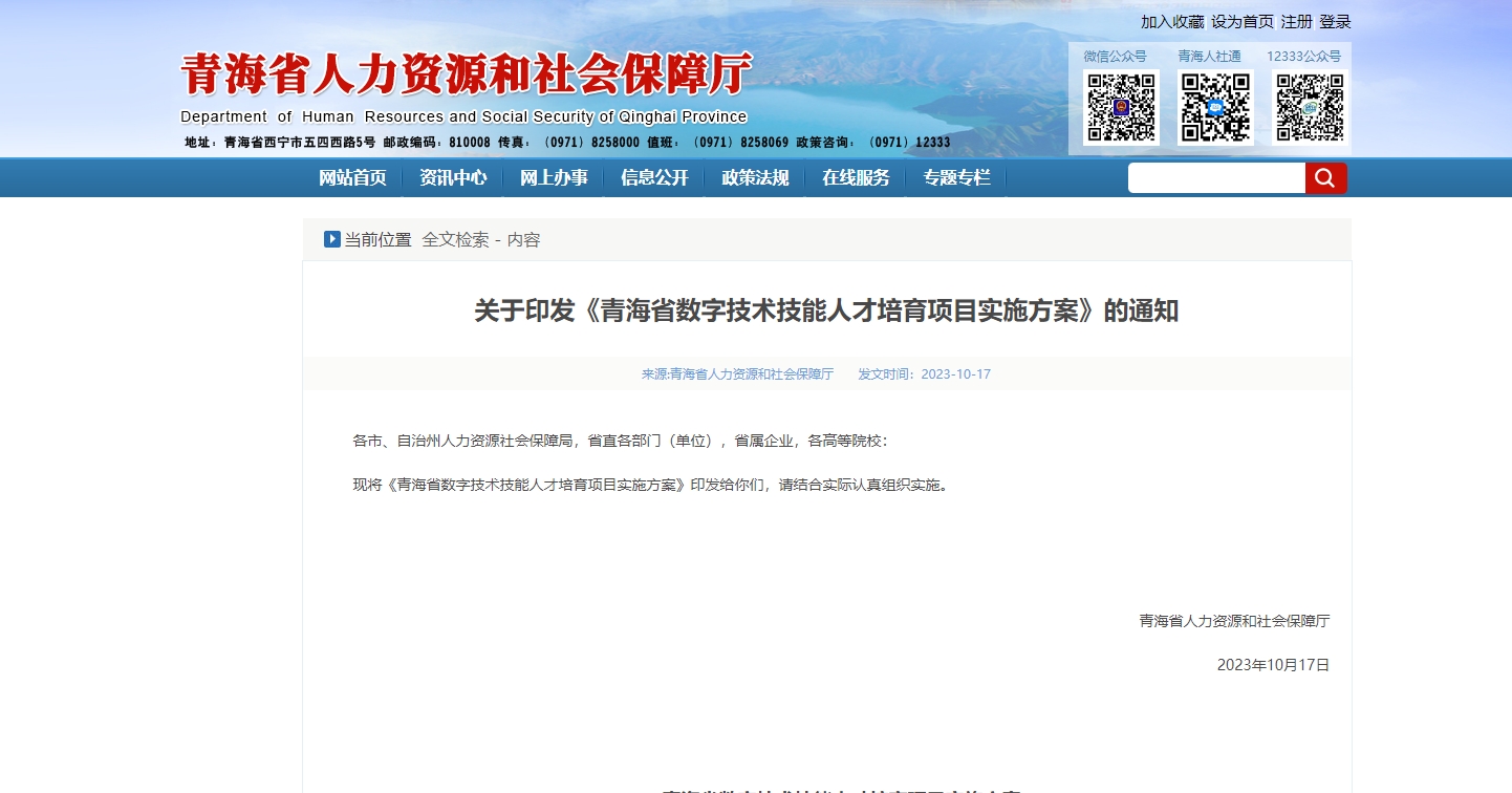 青海省數(shù)字技術(shù)技能人才培育項目實施方案16日起實施